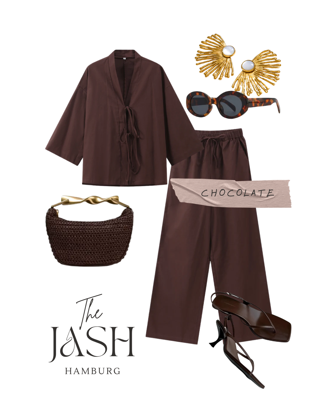 Die Trendfarbe Schokobraun ist 2025 nicht mehr wegzudenken – edel, modern und perfekt für den Sommer! Entdecke jetzt unsere beliebtesten Pieces in Chocolate & Mocha: Lässiges Oberteil mit Bindung & weiter Hose – ideal für Urlaub, Streetstyle & Sommerabende. Kitten Heels, ein Influencer-Favorite!