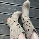 Howdy, Fashionistas! Diese trendigen Cowboy-Stiefel in Toffee und Beige sind das ultimative Must-have für alle, die den Western-Trend 2025 lieben. Mit ihren filigranen Lochmuster-Stickereien, dem klassischen Absatz und dem komfortablen Slip-on-Design werden sie zum absoluten Hingucker – nicht nur auf Festivals!