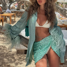 Let’s go viral! Diese atemberaubende Glitzerbluse mit Feder-Details ist das Must-Have für deinen ultimativen Glam Moment. Ob als Cover-up im Beach Club, für den nächsten Party Look oder als WOW-Auftritt auf Social Media – mit dieser Bluse wirst du gesehen.