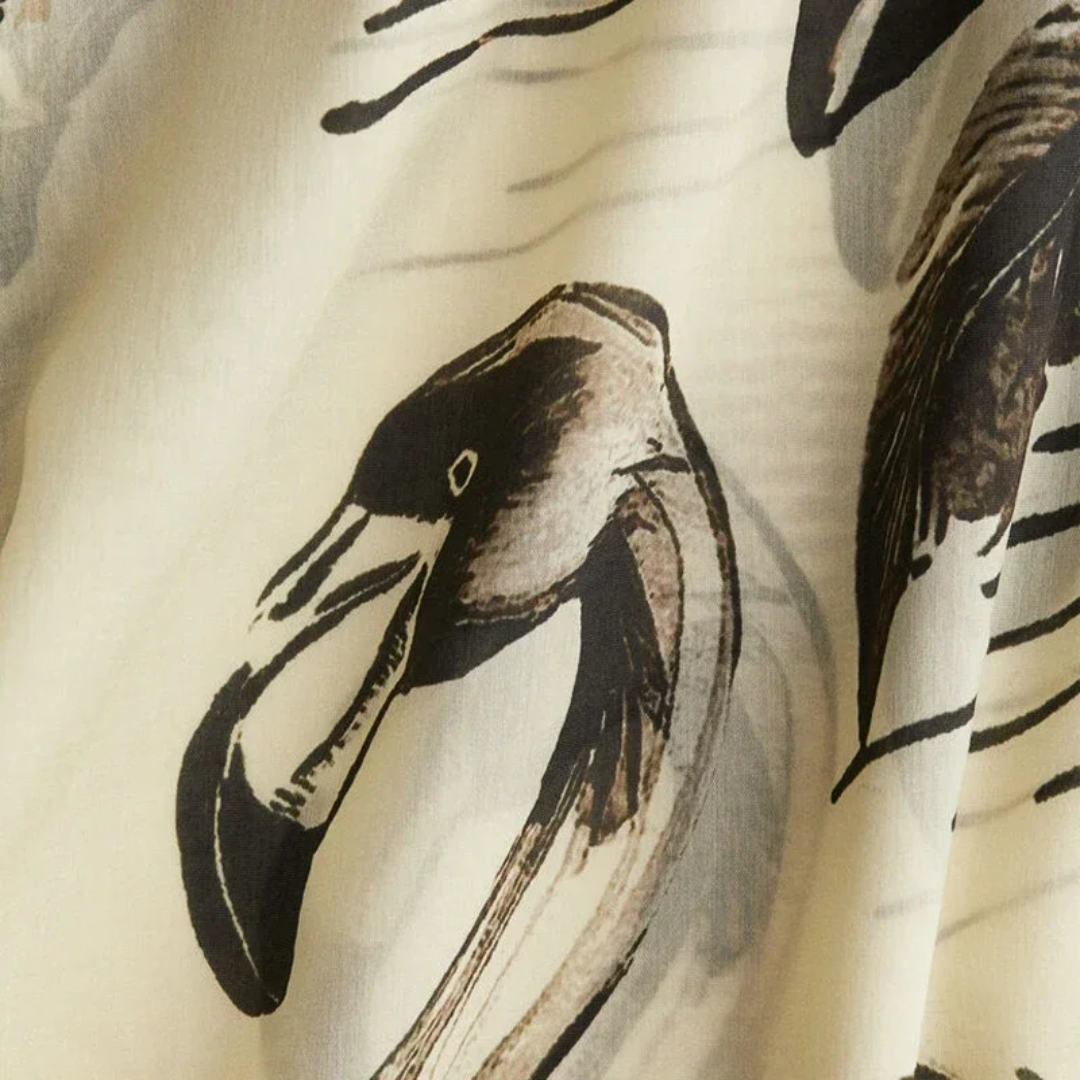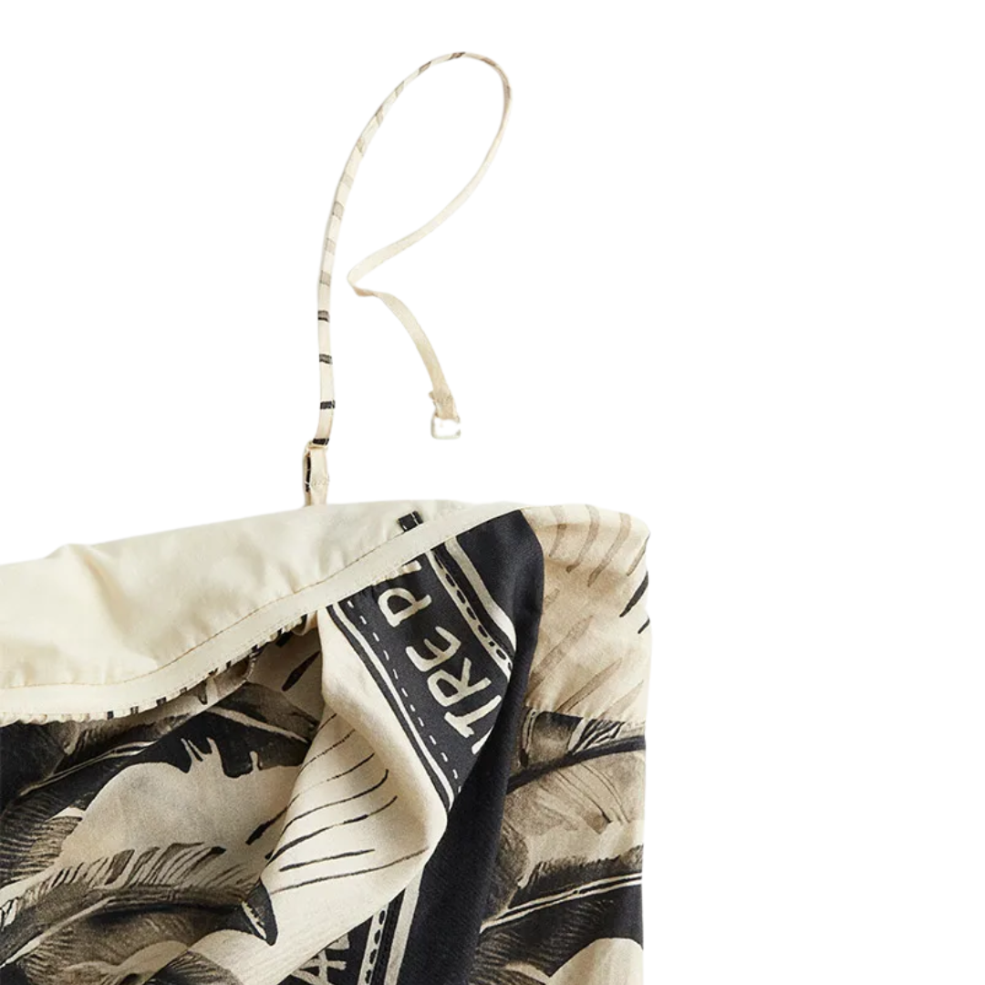 Mit seinem fließenden Schnitt, dem femininen V-Ausschnitt, den wallenden Ärmeln und den edlen Creme-Schwarz-Kontrasten verkörpert das Design pure Sommer-Eleganz. Ein echtes It-Piece für deinen Urlaub – inspiriert von den Looks internationaler Influencer.