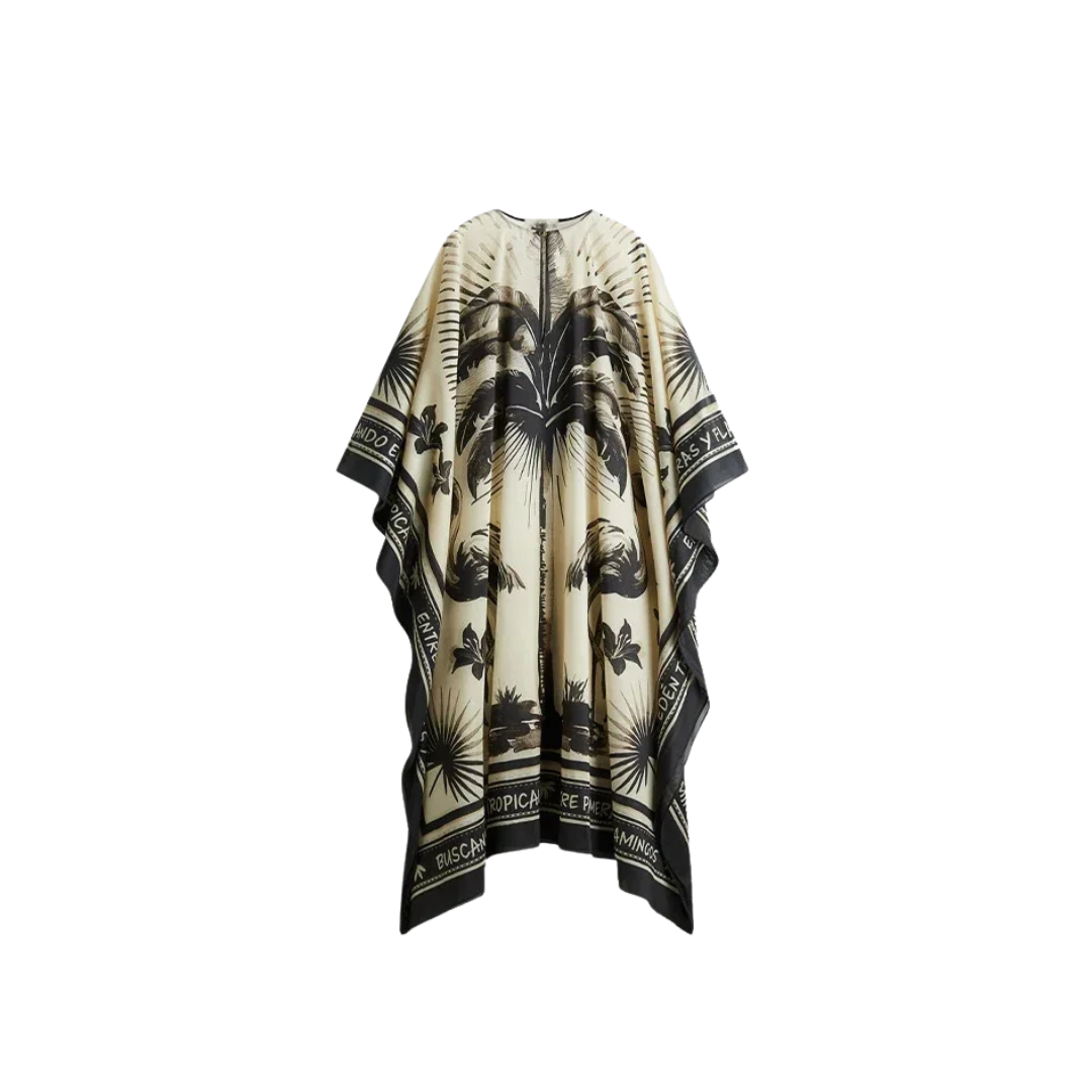 Strandkleid oder Kaftan im Boho Look – Oversize Beach Cover-Up in Creme & Schwarz – Influencer Style