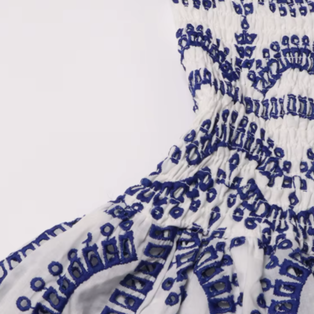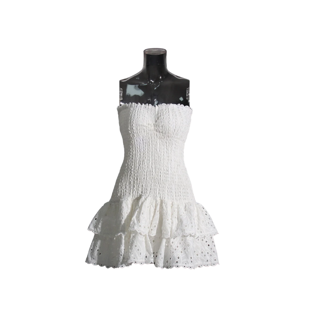 Entdecke unser angesagtes Minikleid im Bardot Style, das durch zarte Stickereien und eine feminine Empire-Taille alle Blicke auf sich zieht. Das schulterfreie Design im beliebten Influencer Look zaubert eine schlanke Silhouette und sorgt für einen eleganten, sommerlichen Auftritt – egal ob beim Beachclub in Saint Tropez, einem Festival oder einer Sommerparty.