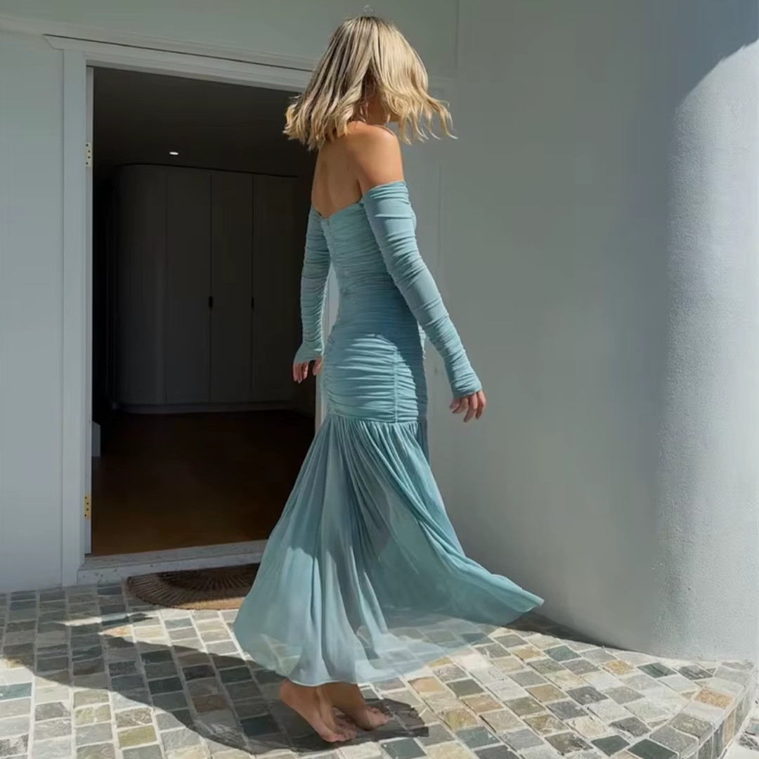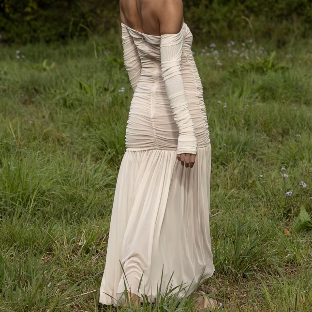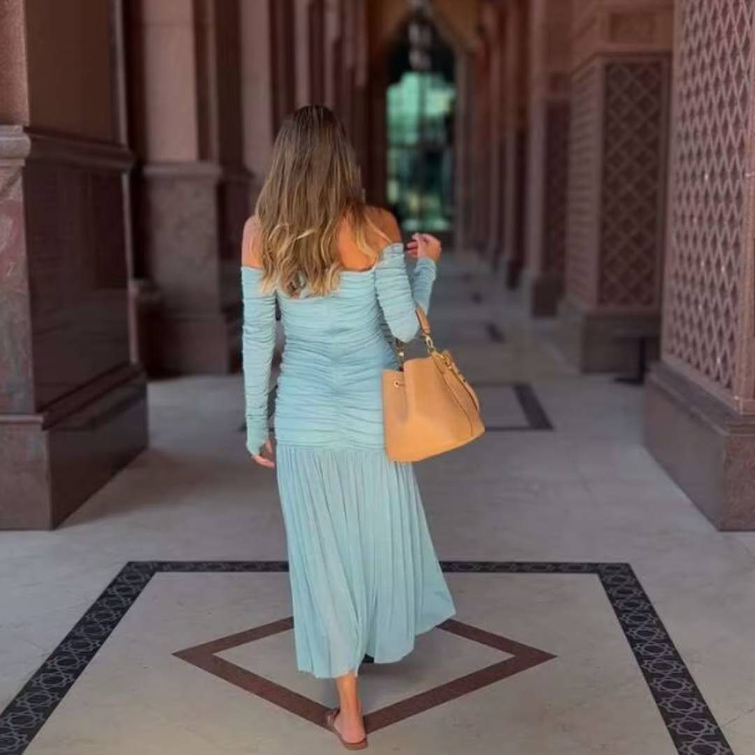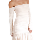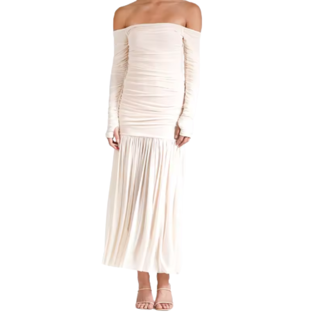 Mit diesem eleganten Off Shoulder Maxikleid ziehst du alle Blicke auf dich – ein absolutes It-Piece für deinen nächsten besonderen Moment.