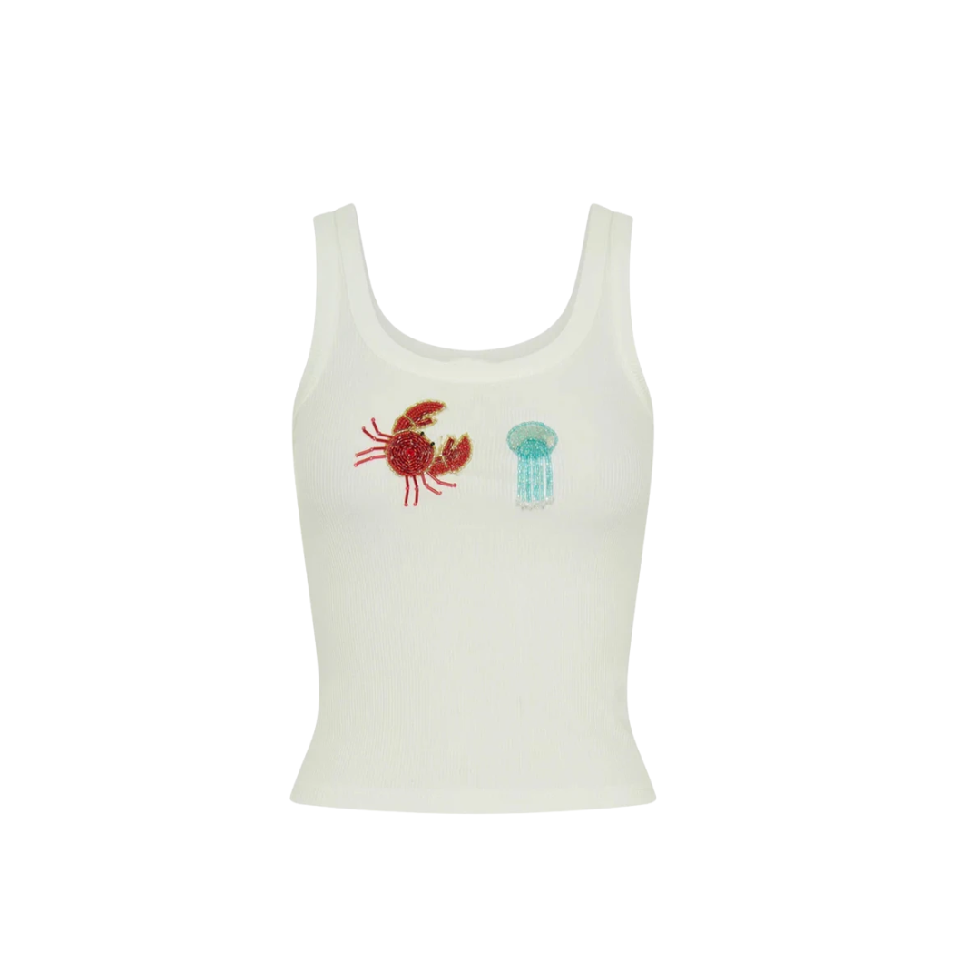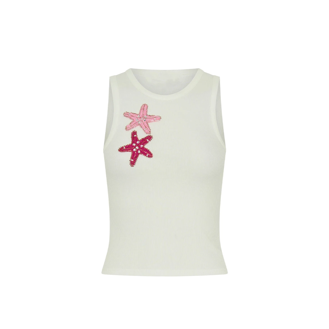 Tanktop mit Seestern- oder Krabben-Applikation – Weißes Sommer Top im Mermaid & Beach Club Look