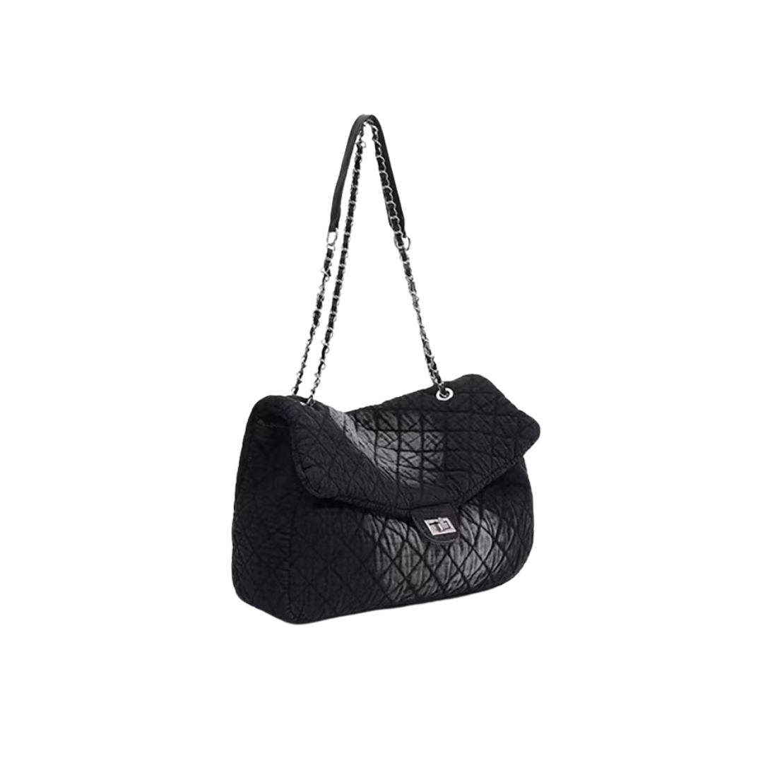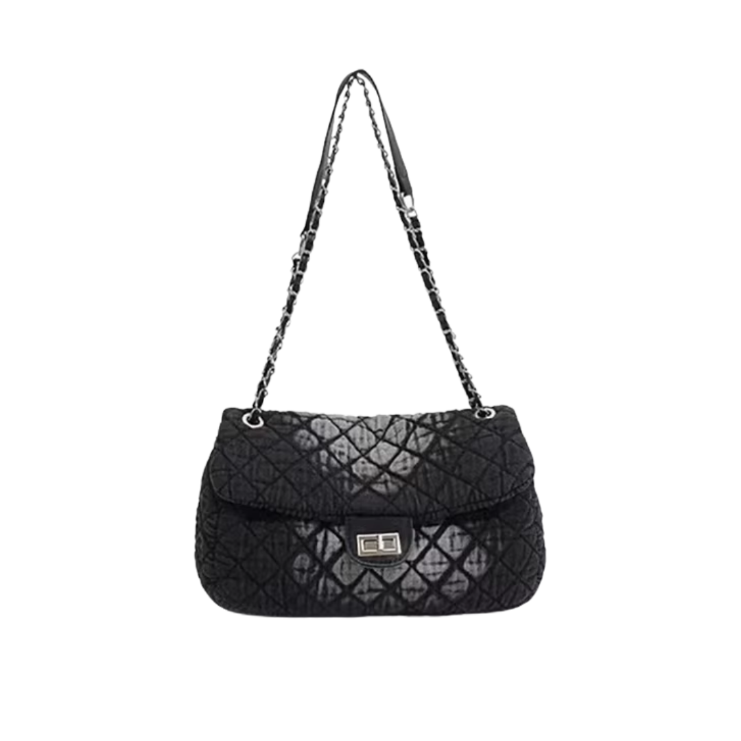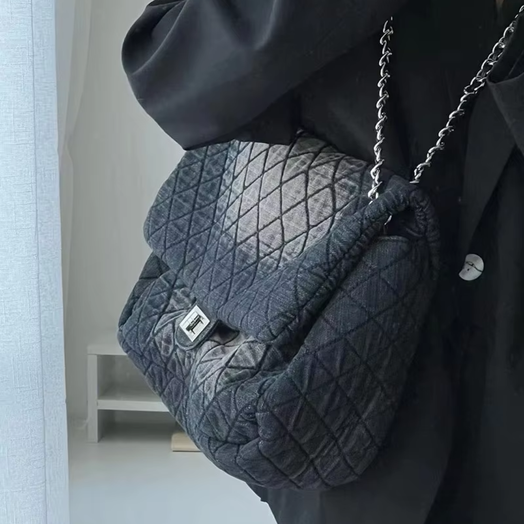 DENIM Handtasche lässig Diamant-Optik Kettenriemen