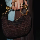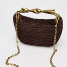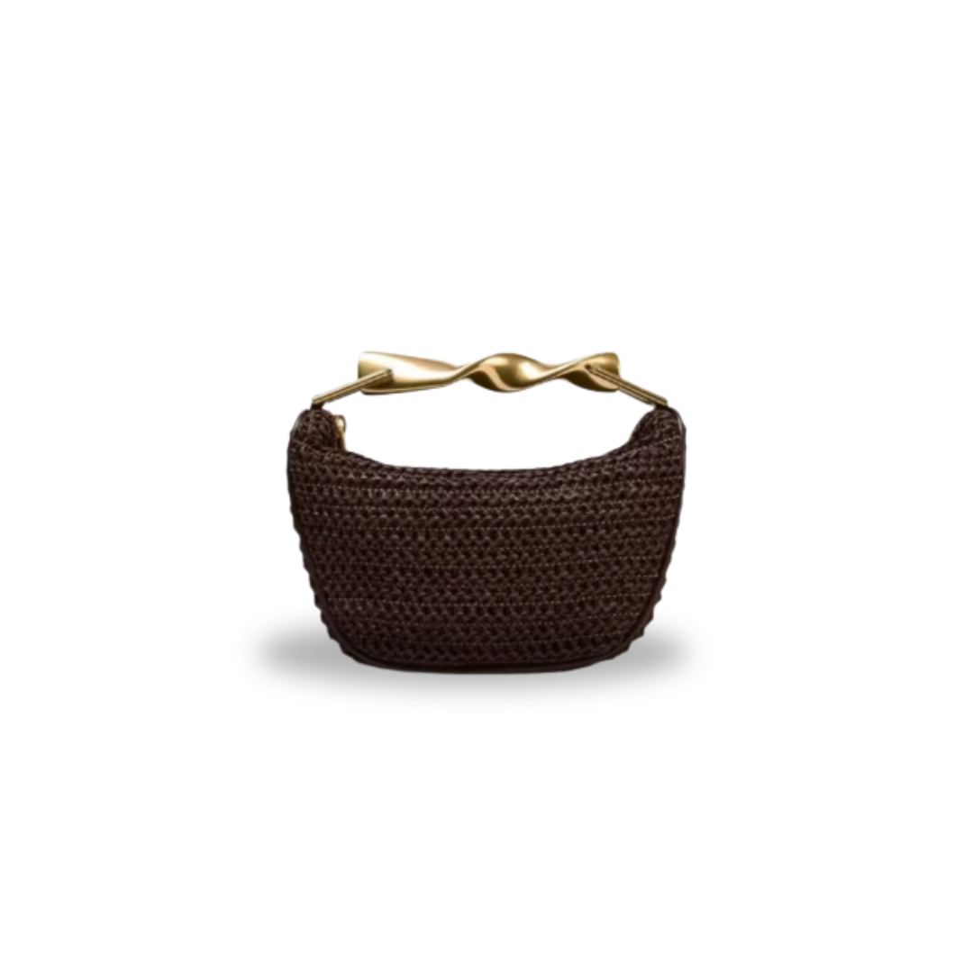 Dunkelbraune Hobo-Bag mit goldenen Details – Gewebte Trendtasche mit Kette & Henkel | Influencer Must-Have 2025