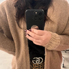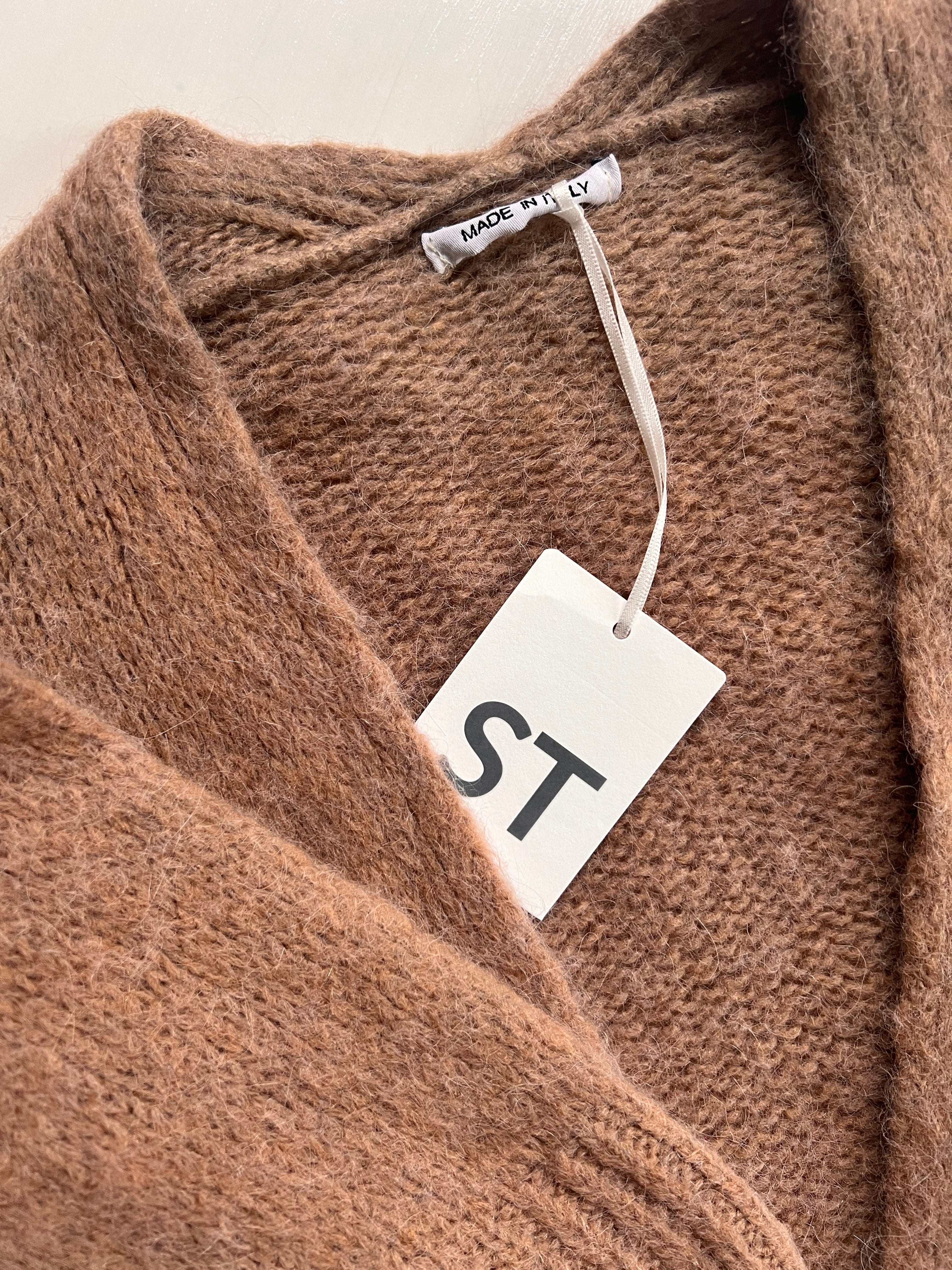 Hergestellt in Italien, überzeugt er mit einer hochwertigen Materialmischung: 20% Alpaka für luxuriöse Weichheit, 30% Nylon und 50% Polyacryl für Strapazierfähigkeit. Der Cardigan ist angenehm leicht, warm und pflegeleicht – du kannst ihn bei 30°C waschen.