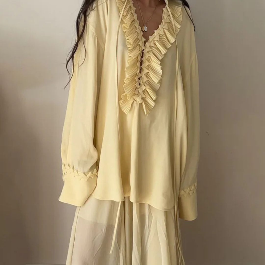 BUTTER YELLOW Boho Rüschen-Bluse Maxirock