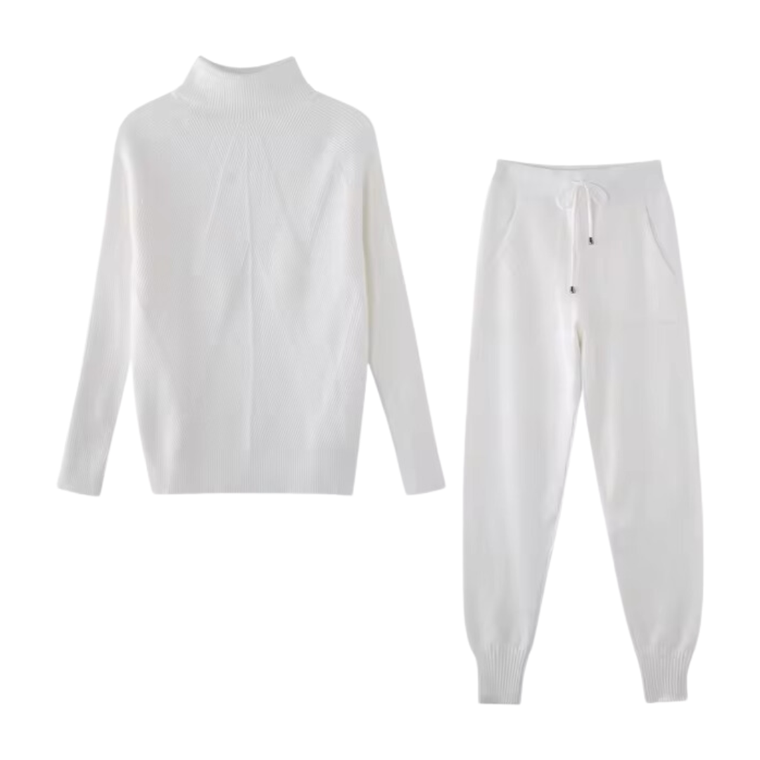 Dieser elegante Zweiteiler bietet die perfekte Kombination aus Stil und Komfort. Das gestrickte Set besteht aus einem einfarbigen, Rippen-Rollkragenpullover und Jogger- Hose, betont die Taille und zaubert eine kaschierende Passform.