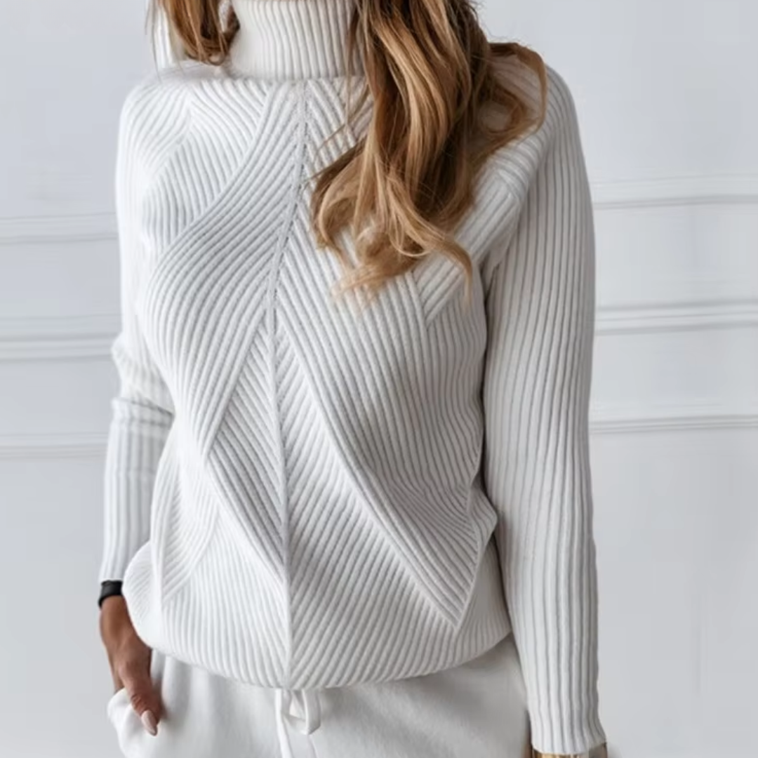 Der Rollkragenpullover hält warm und verleiht durch die Streifen einen modischen Touch. Die elastischen Hosen sorgen für Bewegungsfreiheit und betonen die Taille für eine schlanke Silhouette.