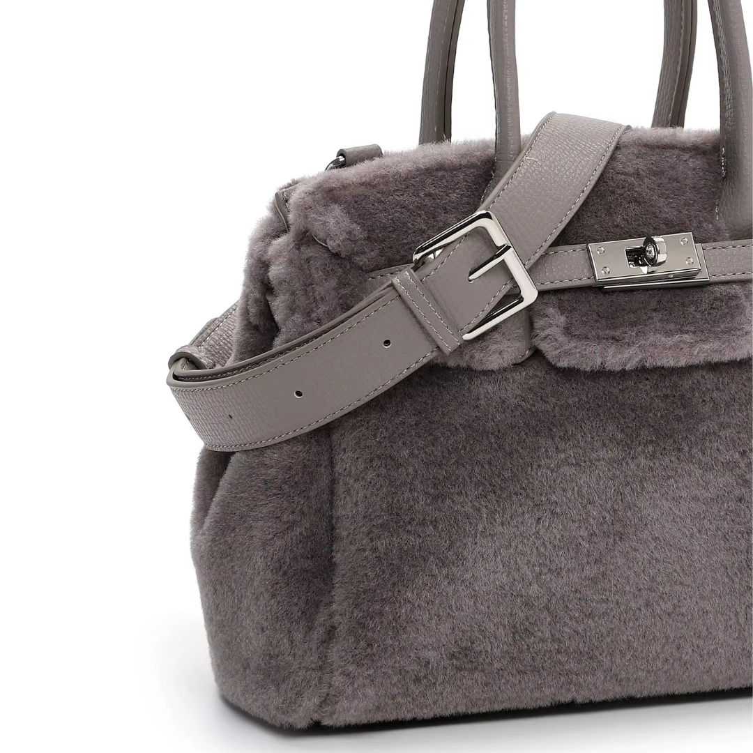 Elegante Fake-Fur Handtasche – Luxuriöser Fell-Look in Grau, Creme, Schwarz & Dunkelbraun