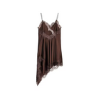 Entdecke das Must-have der Saison: Unser asymmetrisches Spitzenkleid in edlem Dunkelbraun vereint feminine Eleganz mit modernem Streetstyle. Dank luftiger Spaghetti-Träger und der raffinierten, asymmetrischen Schnittführung lässt sich das Kleid nicht nur klassisch tragen, sondern auch – wie von Influencern geliebt – als stylishes Longtop zur Hose kombinieren.