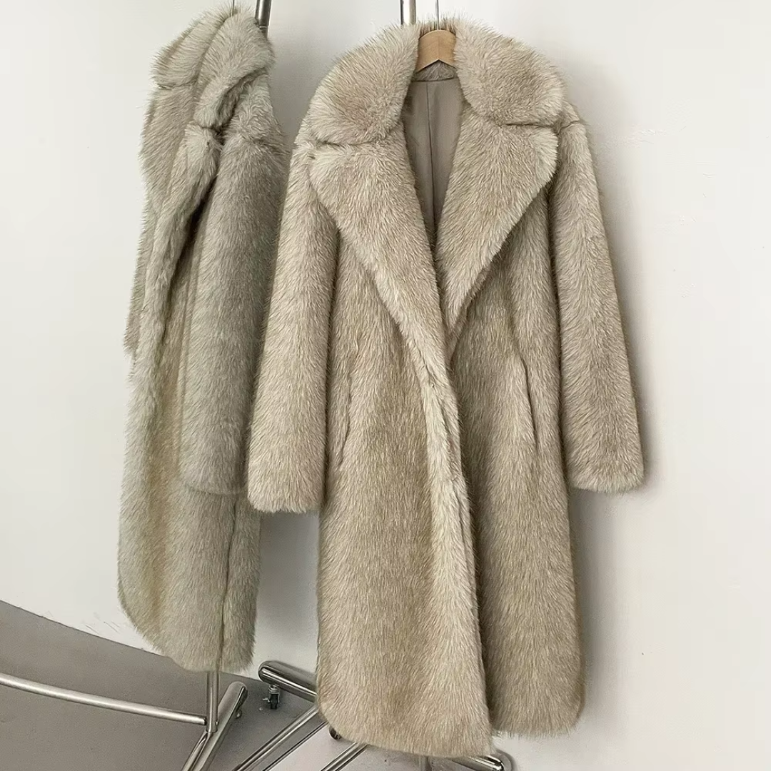 Mach jeden Wintermoment zum Statement und setze auf einen Look, der Komfort und High-Fashion vereint. Mit dem COZY Kunstfellmantel bist du der Star auf jeder Piste und Party!