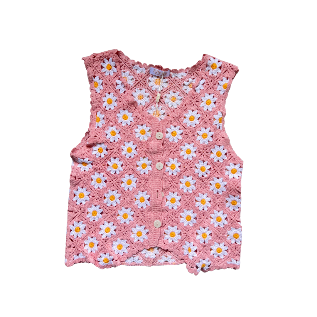Rosa Häkelweste mit Knöpfen – Boho Traum mit Saint Tropez Vibes
